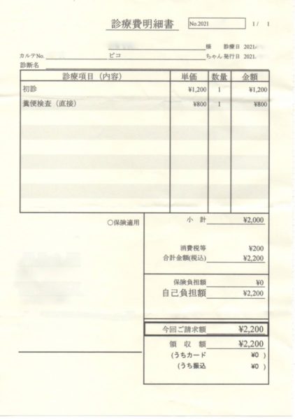 セキセイインコの健康診断で支払った費用